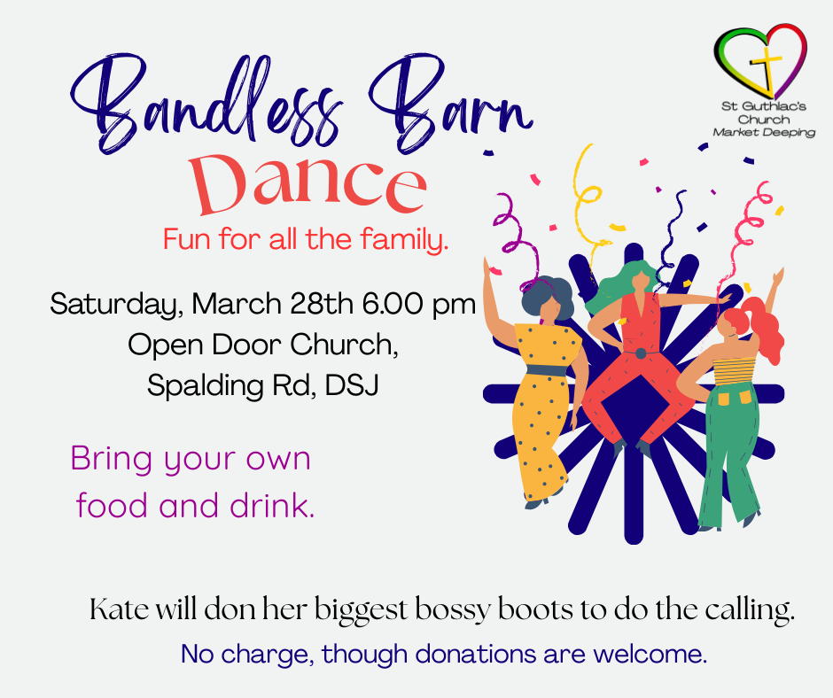 Join us for a Bandless Barn Dance on Saturday 28th March at 6.00pm at Open Door Church (Spalding Road).